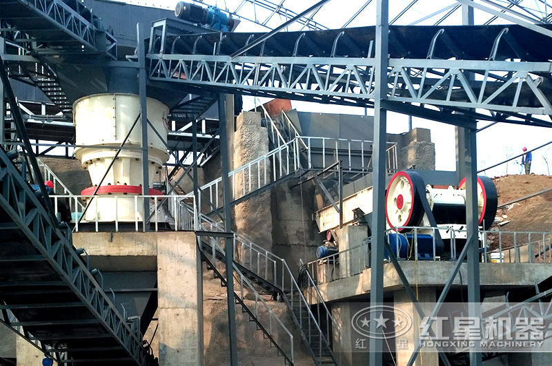 紅星大型石頭碎石機成品骨料現(xiàn)場